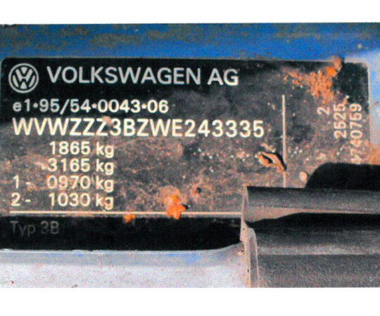– samochód osobowy marki Volkswagen Passat, rok produkcji 1997, o numerze rejestracyjnym EZD 72YP oraz numerze identyfikacyjnym